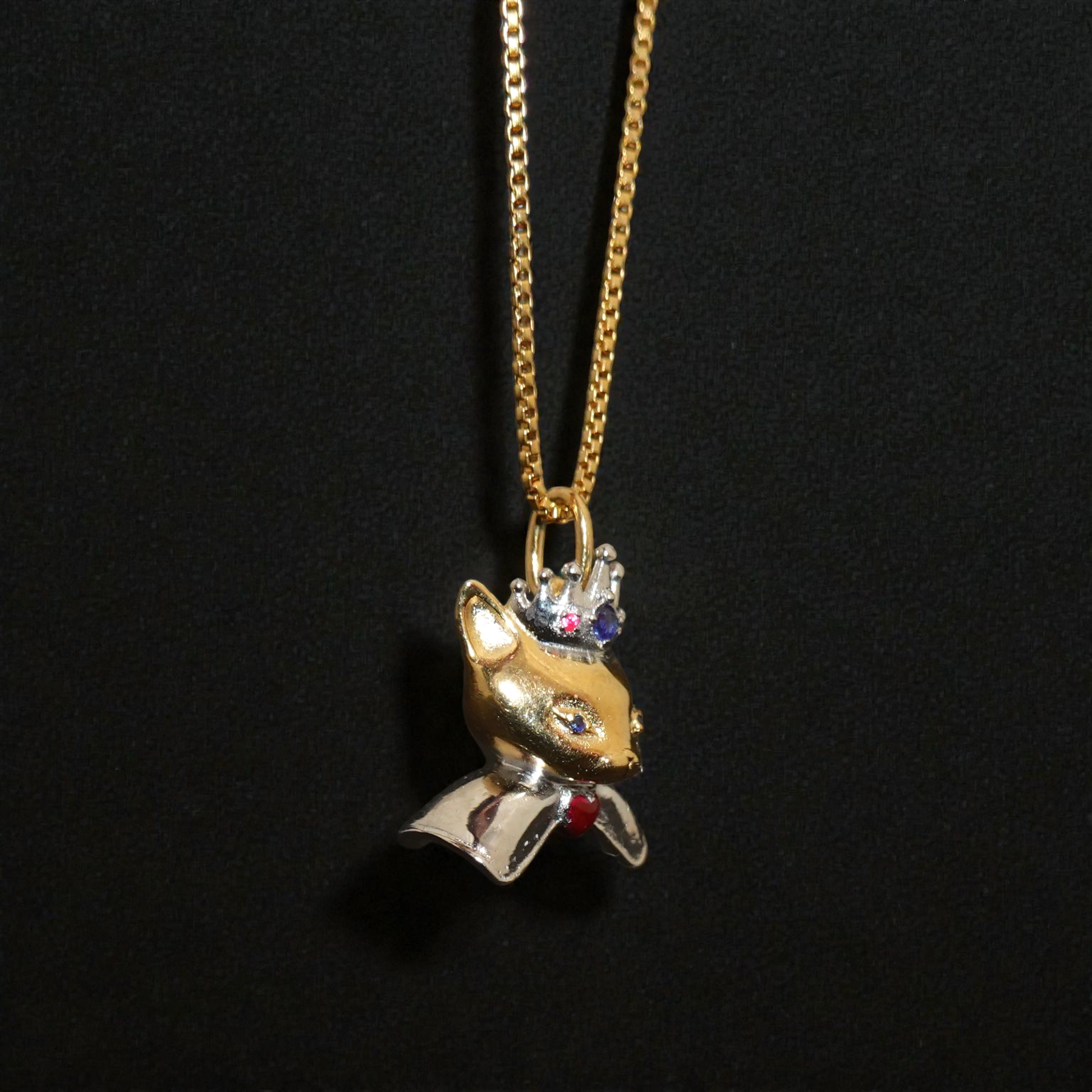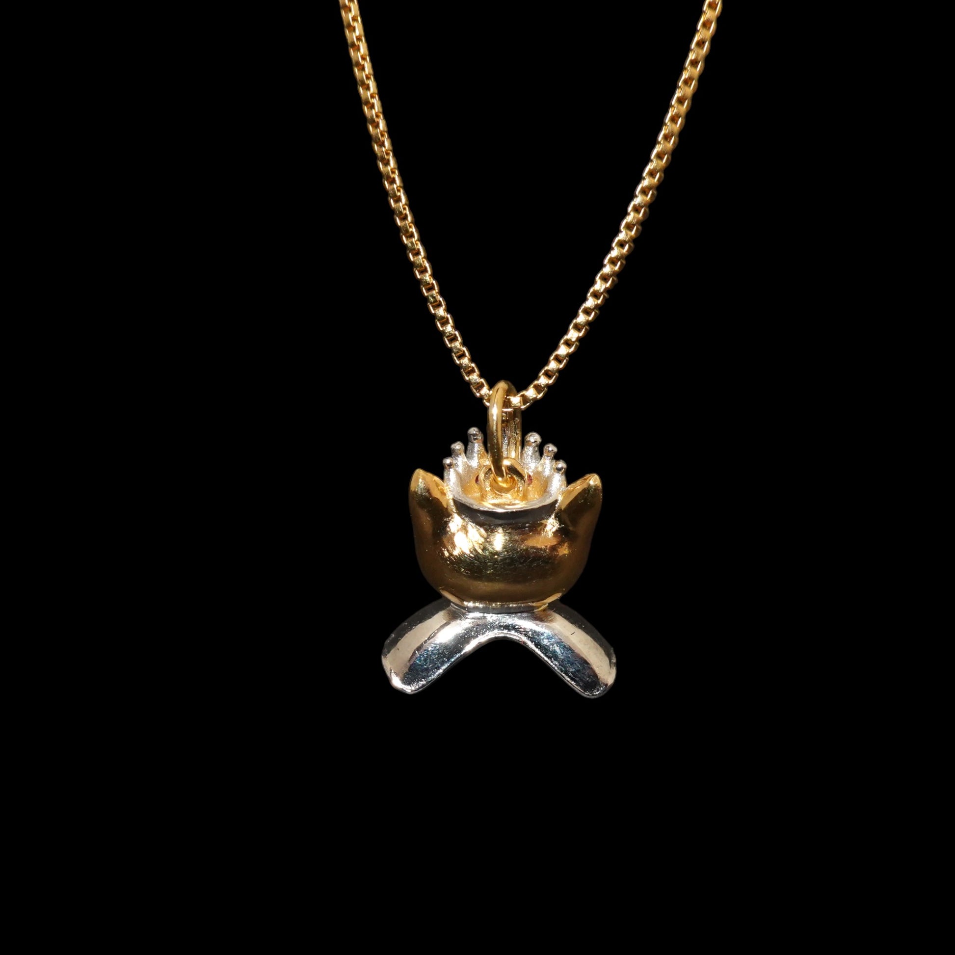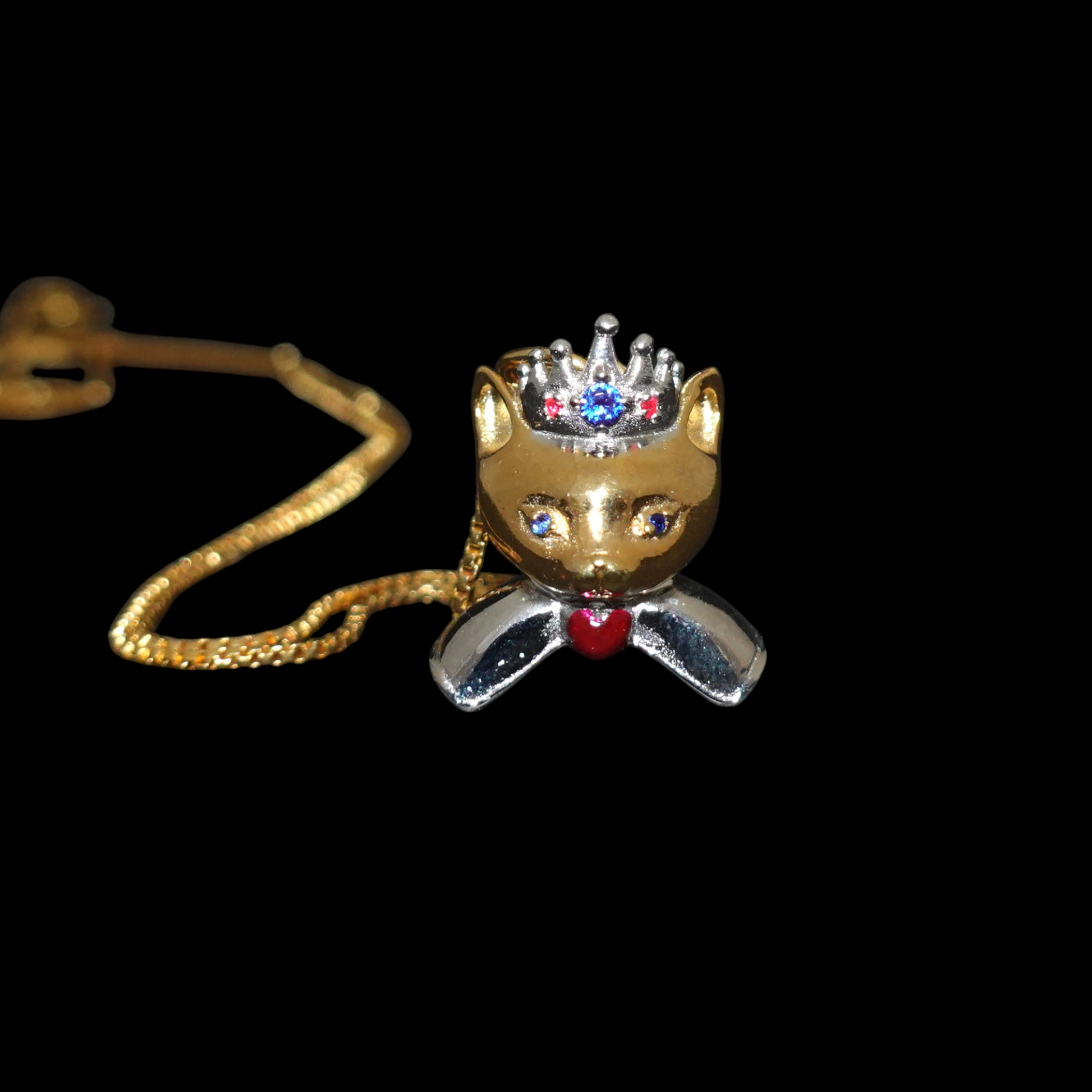 Esta pieza modelada en 3D está delicadamente elaborada en Plata de Ley .925, con baño de oro de 14 kilates. Sus ojos y su corona destellan con el brillo de zirconias engastadas, mientras que su moño lleva un vibrante corazón esmaltado a mano late bajo su mentón, simbolizando el amor.